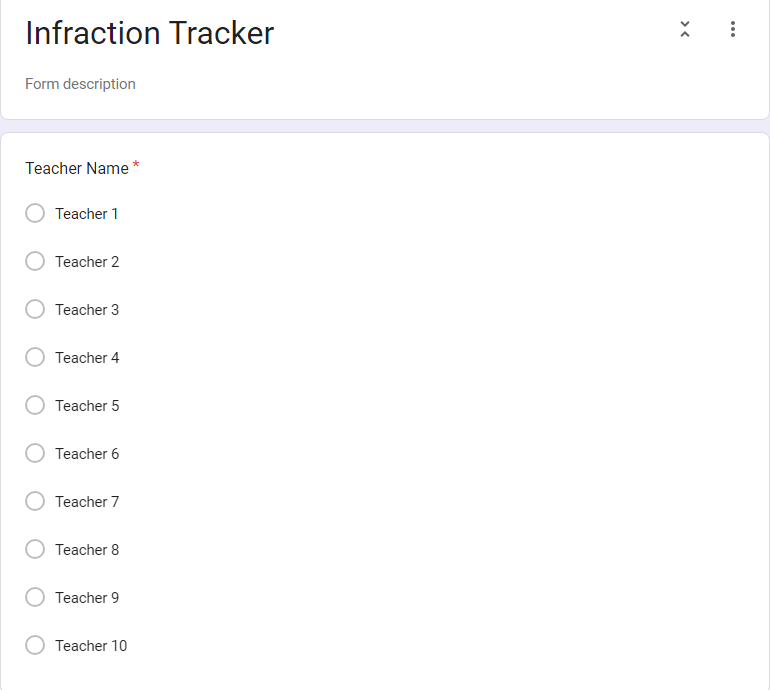Step 4- Adding the Behavior Sheets in Google Forms